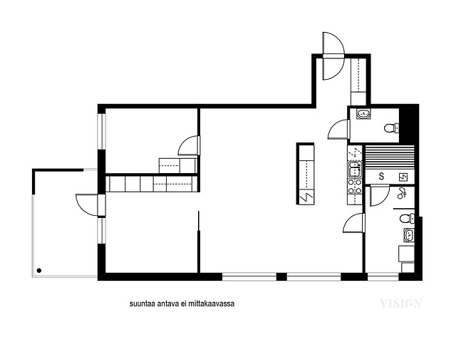 Huoneistossa on kauniin keittiön, kylpyhuoneen ja saunan lisäksi erillinen wc, olohuone ja kaksi makuuhuonetta, joten se sopii erinomaisesti vaikkapa perheelle tai pariskunnalle!