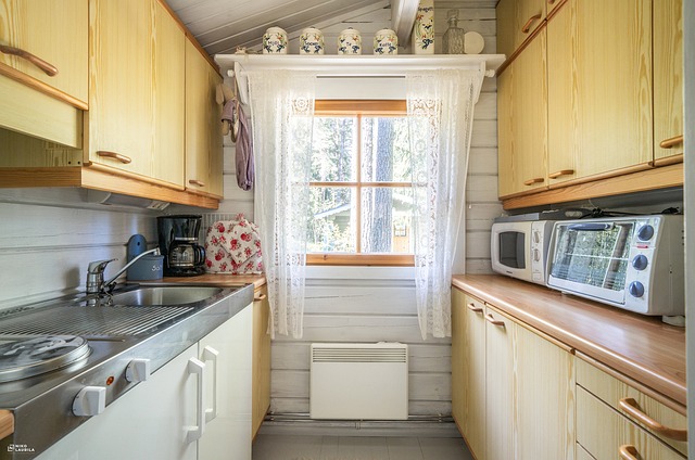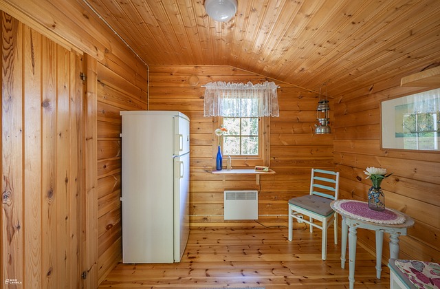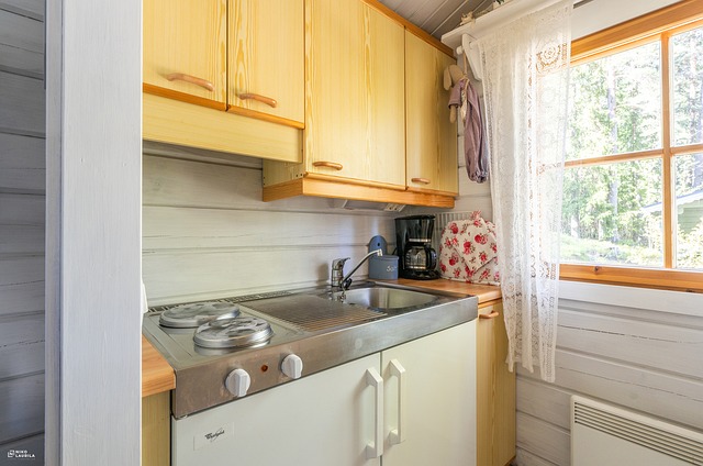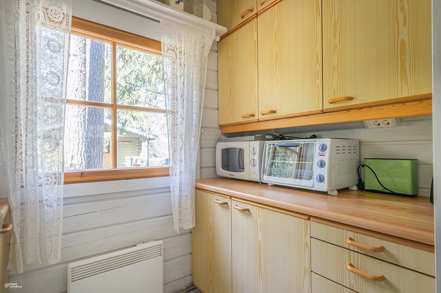- Keittiössä puulaakaovet sekä valkoiset laakaovet, laminaattitasot. Kodinkoneet: sähköliesi ja jääkaappi.