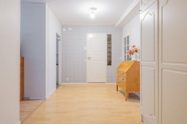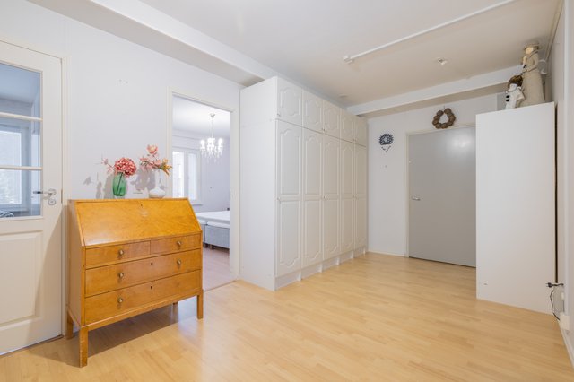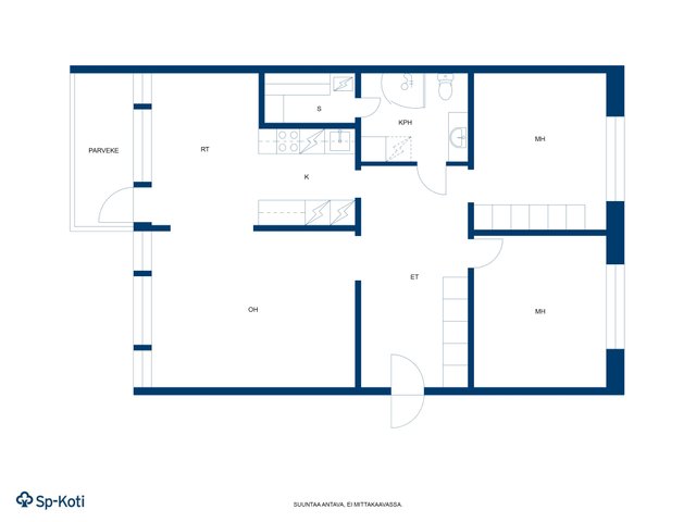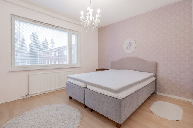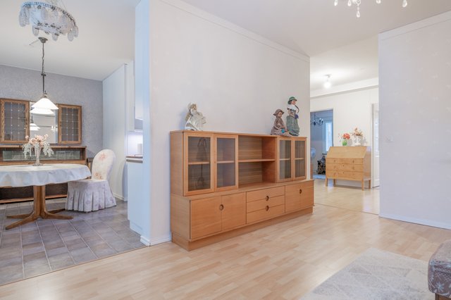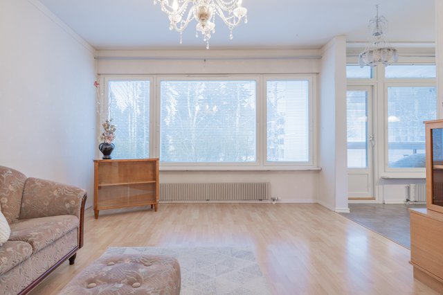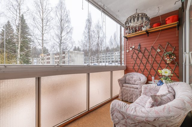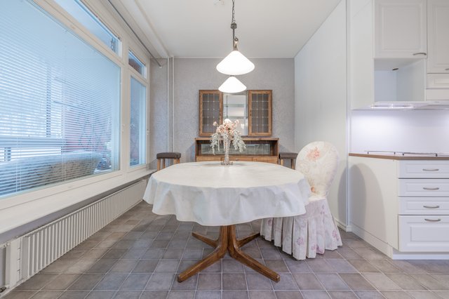 Tässä valoisassa toisen kerroksen läpitalon huoneistossa on kaksi makuuhuonetta, olohuone ja vuonna 2012 uusittu vaaleasävyinen keittiö. Isosta ruokailutilasta on käynti lasitetulle parvekkeelle, mikä tarjoaa kesäisin mukavan lisätilan.