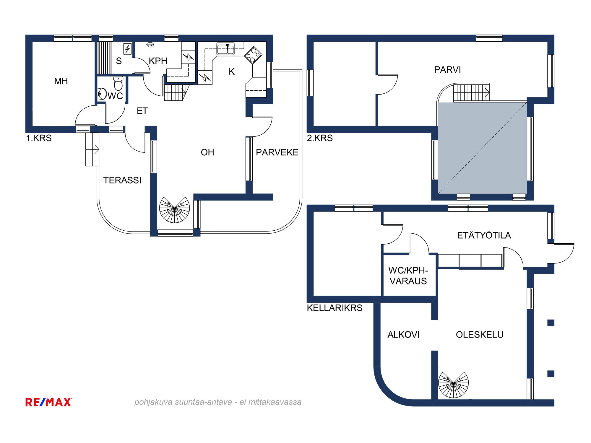 Mh,oh,k,kph,2wc,s,parvi,ask.tila,alkovi,etätyötila,kesäpaviljonki