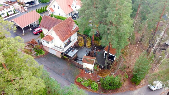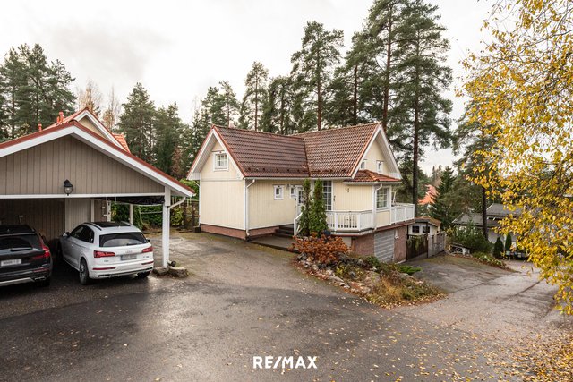 - Autokatos, leikkimökki, liiteri, ja b-osaan kuuluu omistus- ja hallintaoikeus kiinteistön pohjoisen puoleiseen osaan pinta-alaltaan n. 740 m2, sillä sijaitsevine rakennuksineen ja b-alueella sijaitsevaan autokatos/varastorakennuksen osaan siten, että b-osaan kuuluu n. 5 m2 varastotila (yhteisessä varastossa a+b) ja 1 autokatospaikka pinta-alaltaan n. 16 m2 (yhteisessä autokatoksessa a+b). b-osan autopaikka on lännenpuoleinen paikka. b-osalla sijaitsee asuinrakennus, osa yhteisestä autokatos/varastosta, liiteri kesäpaviljonki sekä lasten "hobitti"-mökki ja terasseja useammassa tasossa. lisäksi on pihapysäköintitilaa.