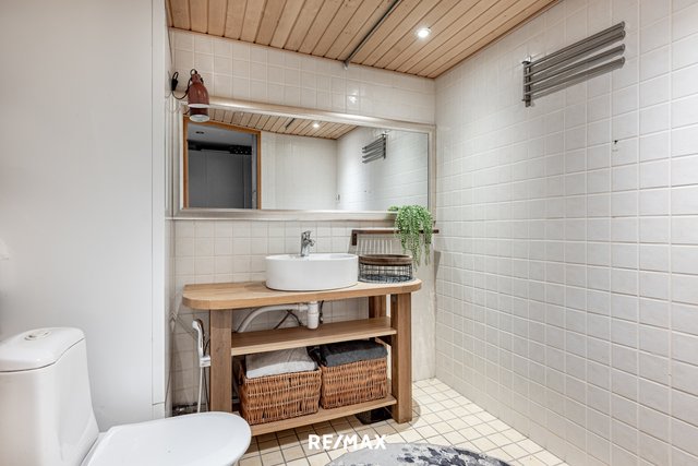 - Suihku, suihkukaappi, pesukoneliitäntä, ja lattialämmitys