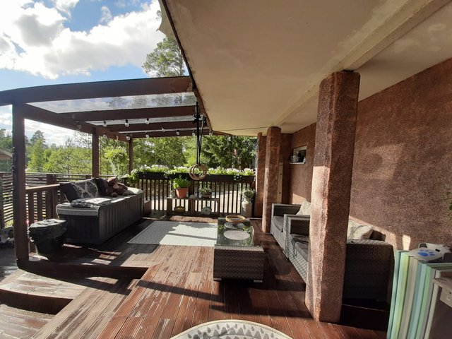 - Terassien yhteenlaskettu pinta-ala on omistajan mukaan n. 120 m2. Pinta-alaa ei ole tarkistusmitattu.