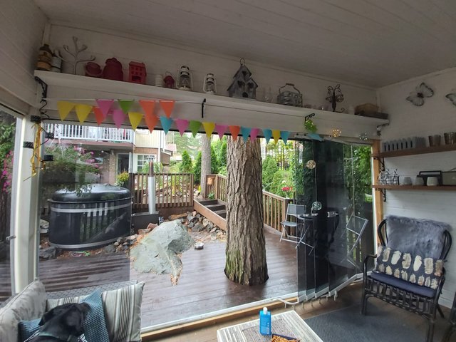Sen pihapiiri oli kuin sadusta: monitasoiset terassit laskeutuivat alas kuin portaat satumetsään, ja niiden päässä odotti kesäpaviljonki, jossa takkatuli loimusi. Pihan nurkassa nökötti pieni “hobitti-mökki”, lasten ikioma valtakunta.