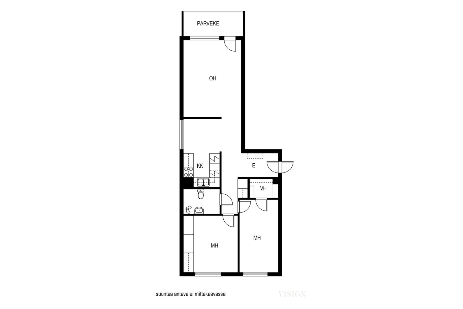 Vuoksenniskalla, palveluiden äärellä toisen kerroksen siisti kolmio. Kivalla pohjaratkaisulla. Lasitettu parveke. Laatoitettu kylpyhuone. Tämä kannattaa käydä katsomassa paikan päällä!