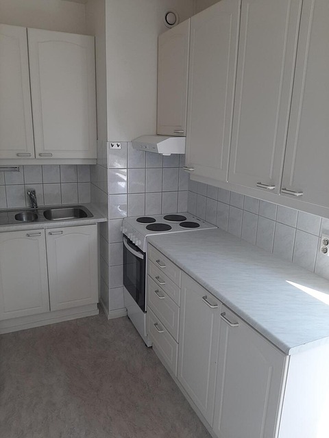 - Liesi, astianpesukone, jääkaappipakastin, liesituuletin, ja kiinteät valaisimet