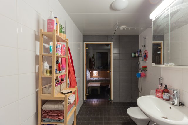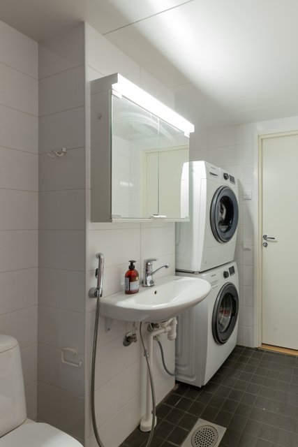 - WC-istuin, suihku, ja pesukoneliitäntä