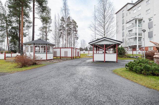 Taloyhtiössä on hyvät yhteiset tilat, kuten pyörävarasto, urheiluvälinevarasto ja kuivaushuone. Autokatospaikka erillisellä osakekirjalla 6500,00 €.