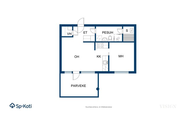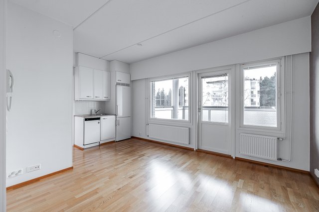 Asunnon tilat ovat kompaktit ja toimivat. Olohuone ja avokeittiö muodostavat avaran oleskelutilan, jossa on helppo viihtyä. Asunnossa on vaaleat pinnat. Kylpyhuoneessa on lattialämmitys ja oma sauna tarjoaa rentouttavia hetkiä arjen keskellä. Lasitettu parveke tuo lisätilaa ja mahdollisuuden nauttia ulkoilmasta ympäri vuoden.