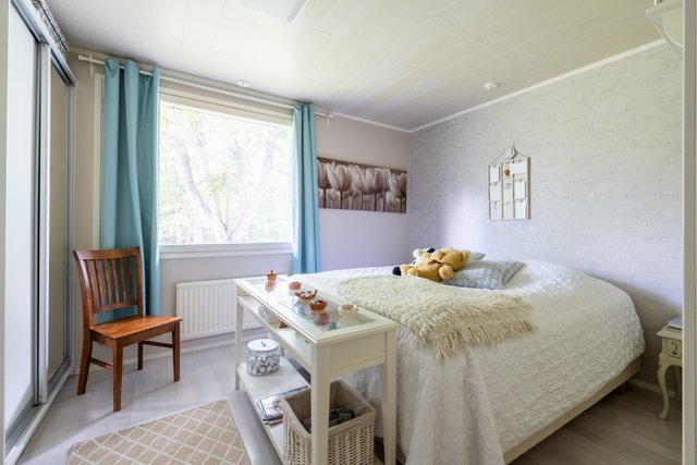 - Yhdessä makuuhuoneessa kiinteä kaapisto. Eteisessä kiinteä kaapisto. Ulkovarasto.