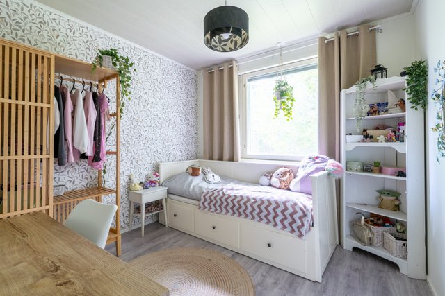 - Yhdessä makuuhuoneessa oleva irrallinen kaappi. Pihalla leikkimökki ja kasvihuone. Polttopuut, jos niitä on kaupanteon hetkellä vielä jäljellä.