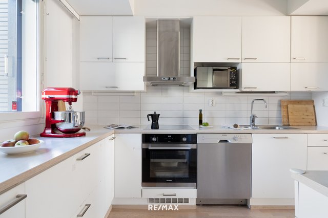 - Jääkaappi, erillinen pakastin, uuni (Pyrolyysiuuni), liesi, astianpesukone, ja liesituuletin