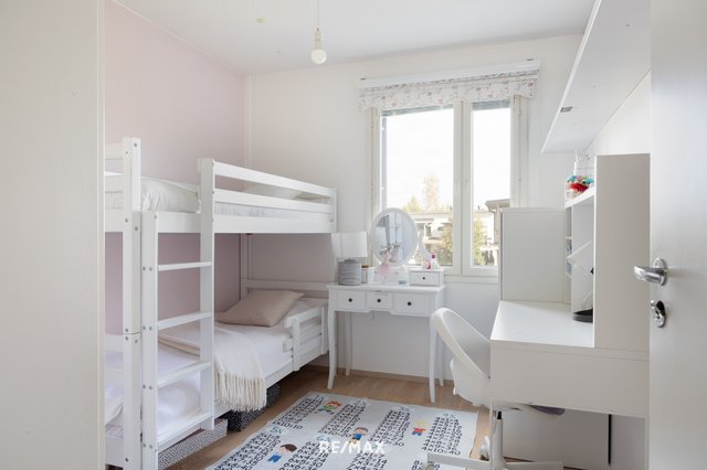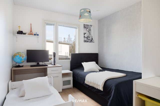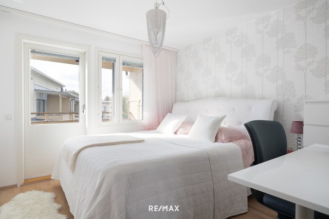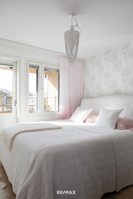 - Kahdessa pienmmässä makuuhuoneissa tapettiseinät.