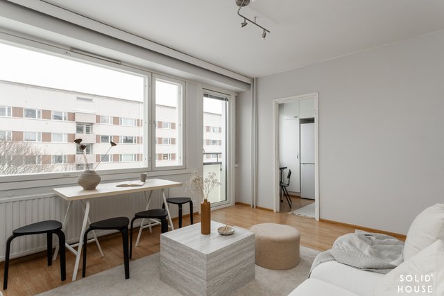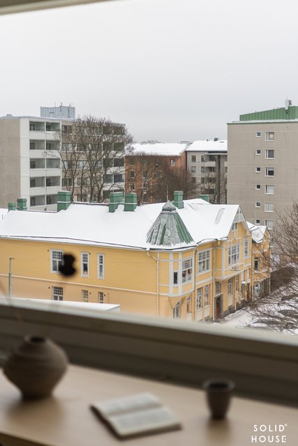 Tämä asunto ei kilpaile vastaremontoiduilla pinnoilla vaan sijainnilla ja näkymillä sekä hyvin hoidetulla taloyhtiöllä.