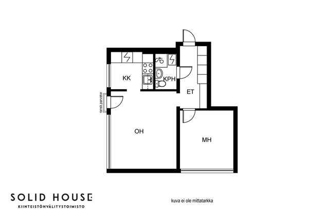 - Ei tarkistusmitattu. Pinta-alat saattavat tämän ikäisissä kohteissa (yhtiö rekisteröity ennen 01.01.1992) poiketa olennaisestikin asuinrakennusten nykyisten mittaustapojen ja standardien (SFS 5139) mukaan laskettavasta asuintilojen pinta-alasta. Pinta-ala voi siis olla edellä mainittua pienempi tai suurempi.