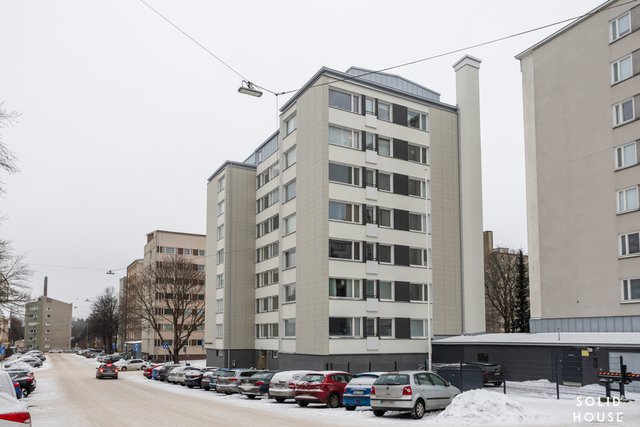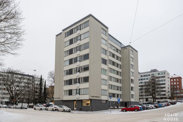 Vastikään mittavan julkisivuremontin läpikäynyt rakennus on herättänyt ohikulkijoissa ihailua ja ihan syystä. Remontti on toteutettu perusteellisesti 2024-2025: Kaikki vanhat ulkokuoret ja eristeet sekä myös parvekkeet purettiin ja tehtiin uudelleen. Lopputulos oli rakenteellisesti onnistunut ja miellyttää myös esteetikon silmää.
