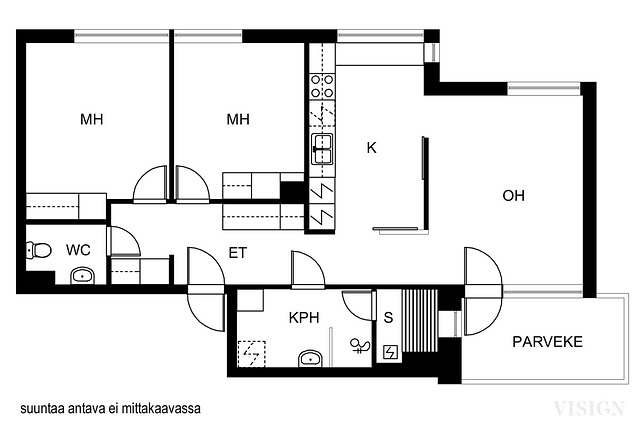 Asunto löytyy ensimmäisestä kerroksesta (ei maantasalla), ja sen ikkunat aukeavat sekä Vuorikadulle että vehreälle sisäpihalle. Olohuoneesta on käynti parvekkeelle, joka tarjoaa rauhallisen paikan arjen hengähdyshetkiin. Huoneistossa on lisäksi erillinen wc ja oma sauna.