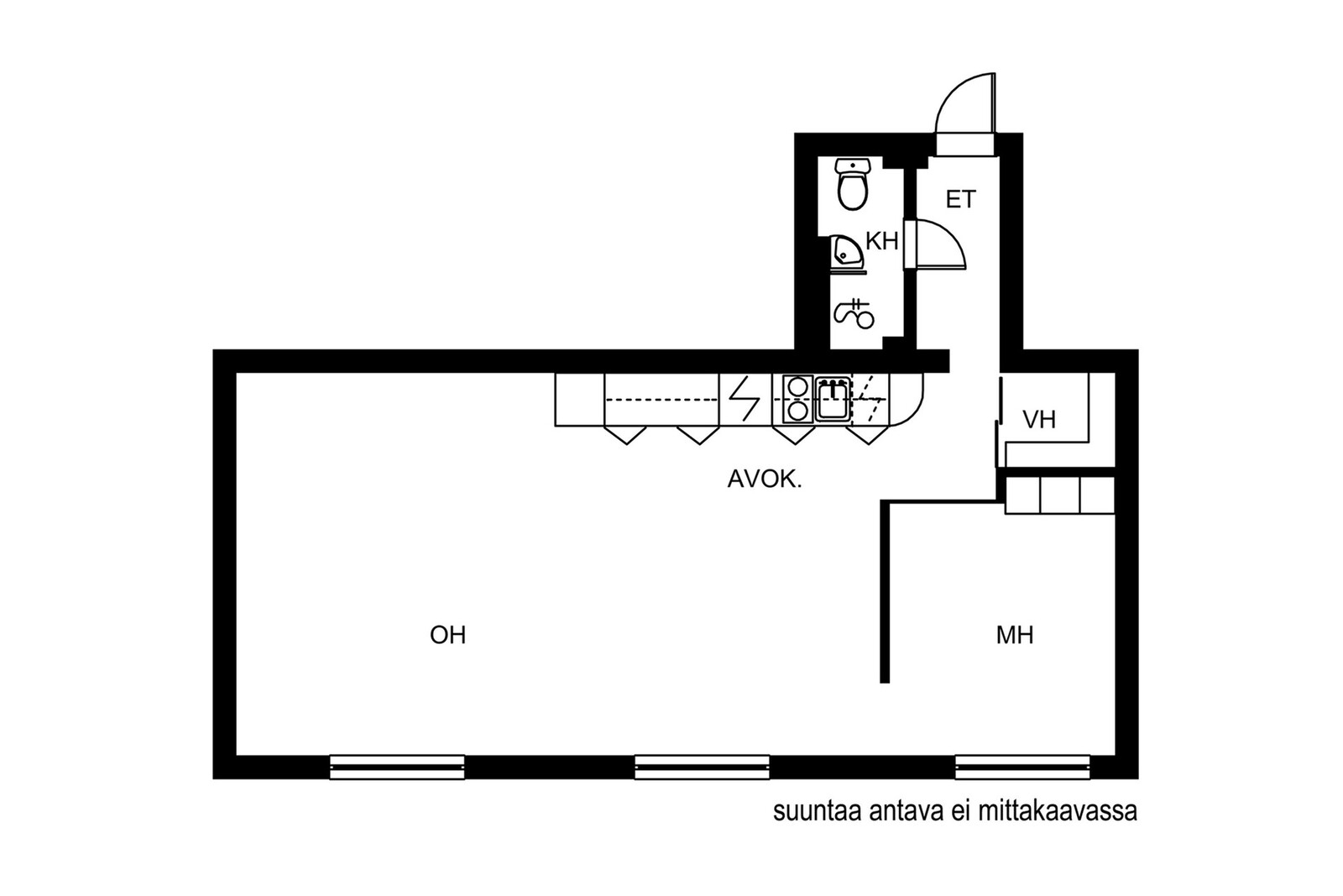 Oh,makuutila,avokeittiö,kph,vh (yj.1h+alkovi+kh)