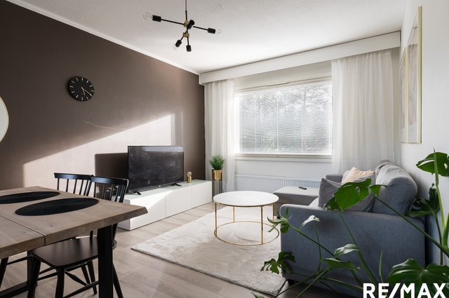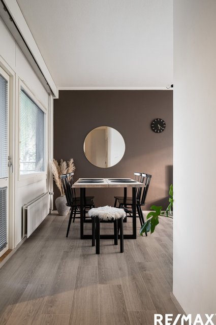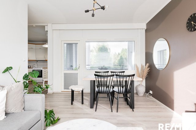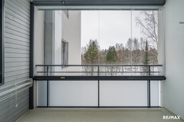 Valoisassa ja toimivapohjaisessa kodissa arki sujuu vaivattomasti. Olohuoneessa on ikkunat sekä pohjoiseen että etelään, joten luonnonvalo kulkee kauniisti huoneen läpi. Keittiön ikkuna avautuu puolestaan itään. Asumisen helmeä täydentää tilava lasitettu parveke, jolta avautuvat rauhoittavat puistonäkymät – kuin oma pieni kesähuone pitkälle syksyyn.