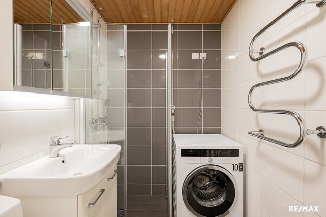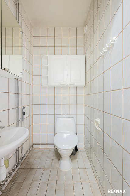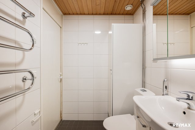 - WC-istuin, suihku, suihkukaappi, pesukoneliitäntä, peilikaappi, pesuallas, ja bidee-suihku