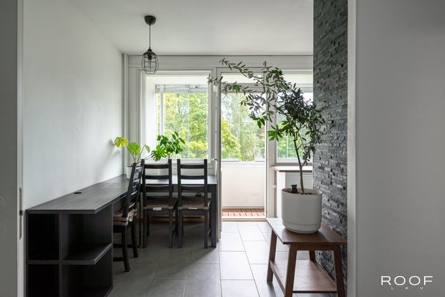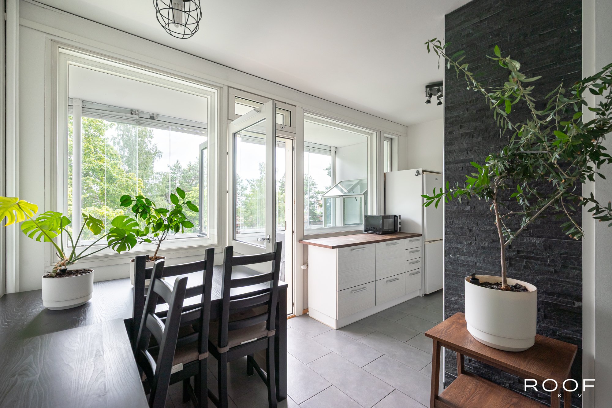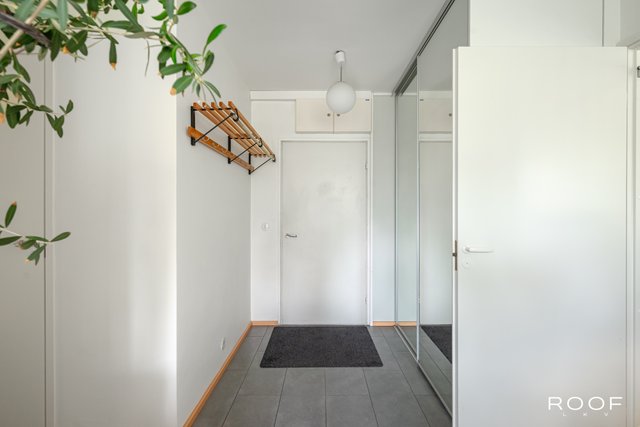 Tämä koti sijaitsee rauhallisessa taloyhtiössä, joka on tunnettu mukavasta yhteisöstään. Asunnon eteisessä on liukuovikaapisto, jossa hyvin säilytystilaa. Eteisestä avautuu näkymä ruokailutilaan ja lasitetulle parvekkeelle. Keittiössä on hyvin kaappi- ja laskutilaa, joten siellä toimiminen on vaivatonta. Eteisessä ja keittiössä on laattalattia. Kylpyhuone on siisti ja siellä on pesukoneliitäntä. Makuuhuoneessa on suuri liukuovikaapisto, jossa on runsaasti säilytystilaa. Olohuone on tilava ja valoisa.