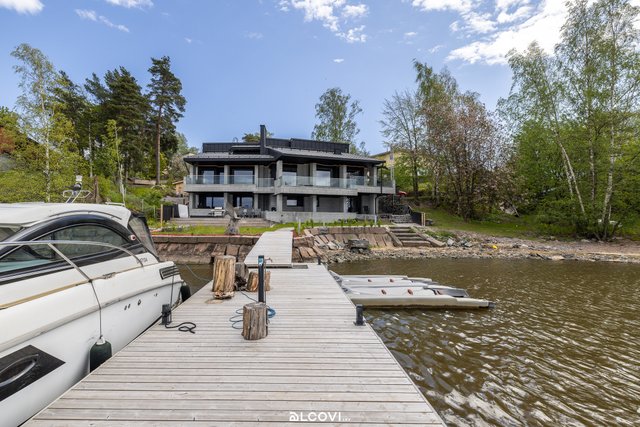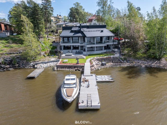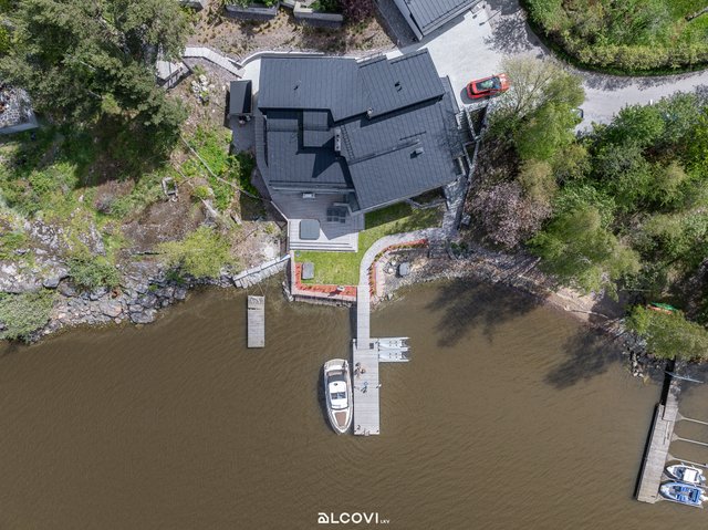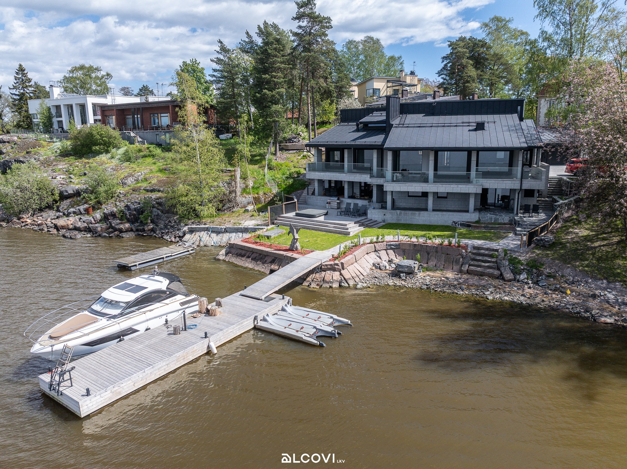 Suojaisa oma ranta ja uudenkarhea laituri, jolle pääsee vaivatta myös isolla huviveneellä, täydentävät tämän ainutlaatuisen rantakiinteistön. Kutsuvat terassialueet tarjoavat valloittavat puitteet kesäpäivien viettoon ja iltojen tunnelmointiin. Lämmin autotalli kahdelle autolle sekä valmiiksi asennetut sähköauton latauslaitteet viimeistelevät arjen mukavuuden.
