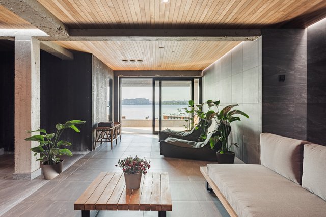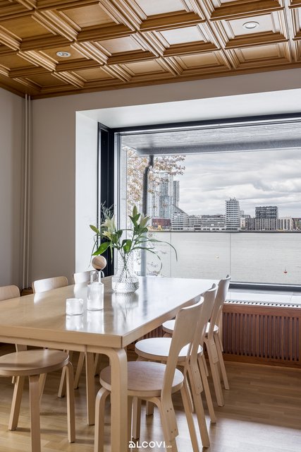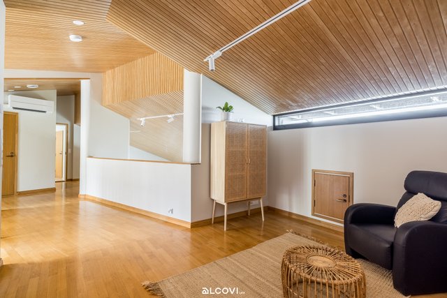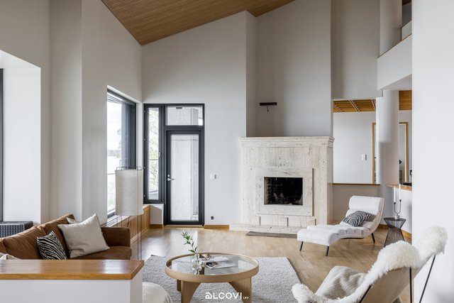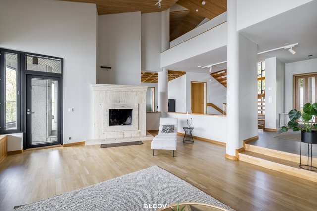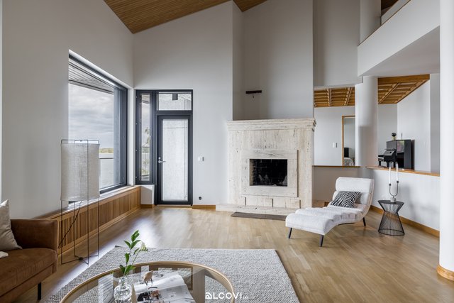 Talon sydämen muodostaa näyttävä olohuone, jossa korkea huonetila, upeat näkymät merelle ja elegantti takka luovat ainutlaatuisen tunnelman. Tilasta on käynti katetulle parvekkeelle, joka on täydellinen paikka kesäpäivistä nautiskeluun.