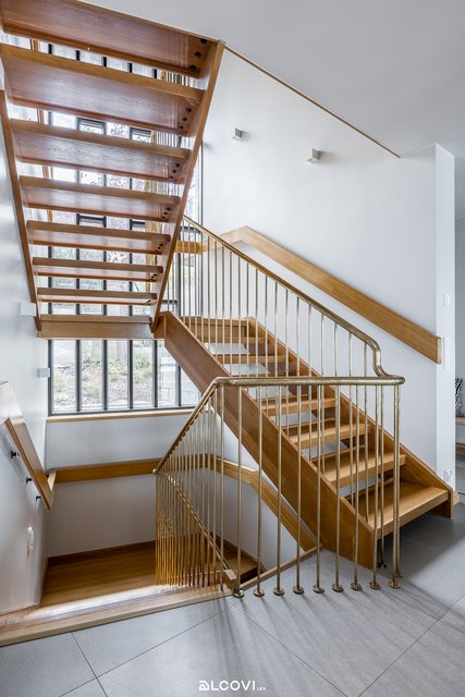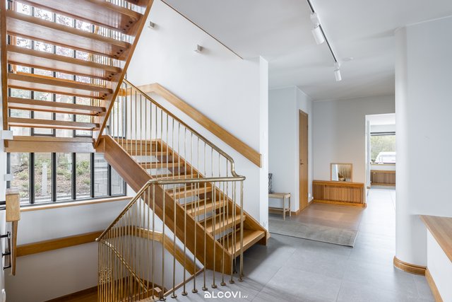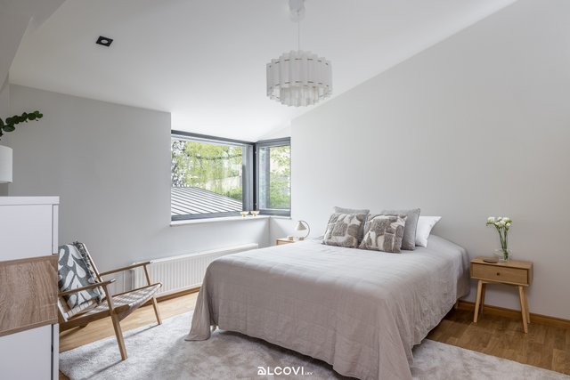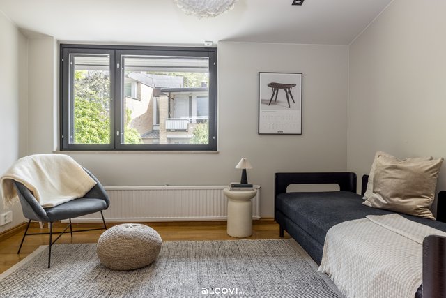 Keskikerroksessa sijaitsee päämakuuhuone, jonka yhteydessä on tilava walk-in-vaatehuone sekä skandinaavisin sävyin viimeistelty, tyylikäs kylpyhuone. Yläkerrasta löytyy kolme makuuhuonetta, avara aula, runsaasti säilytystilaa sekä toinen kaunis kylpyhuone.