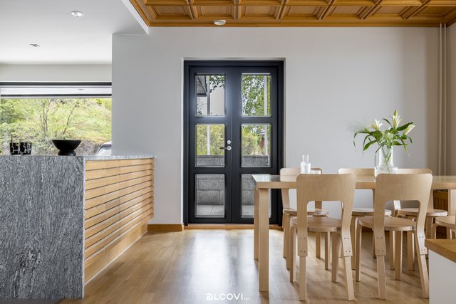 Katseet vangitseva, arkkitehdin hienostuneen kädenjäljen pohjalta syntynyt kokonaisuus hurmaa ensi hetkestä. Uniikki, graniittiverhoiltu asuinrakennus on arkkitehti Harry Lindroosin suunnitelmien pohjalta valmistunut vuonna 1987, ja se on saanut uuden, nykyaikaisen ilmeen sekä ajanmukaisen talotekniikan vuosina 2023–2024 toteutetussa kattavassa saneerauksessa.