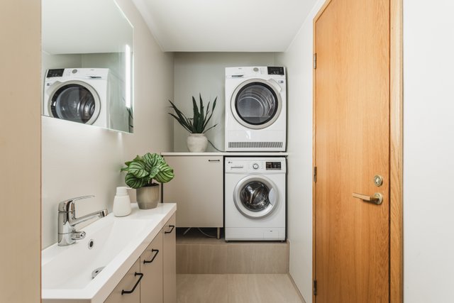 - Kodinhoitohuoneen varustukseen kuuluu vesipiste, runsaasti kiintokaapistoa (Inno-keittiö), pyykinpesukoneliitäntä, tilavaraus pyykinpesukoneelle ja kuivausrummulle. Lattia on laattaa, seinät maalatut. Katossa upotetut led-spotit. Kulku suoraan ulos.