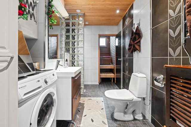 - WC-istuin, suihku, lattialämmitys, peili, ja pesuallas