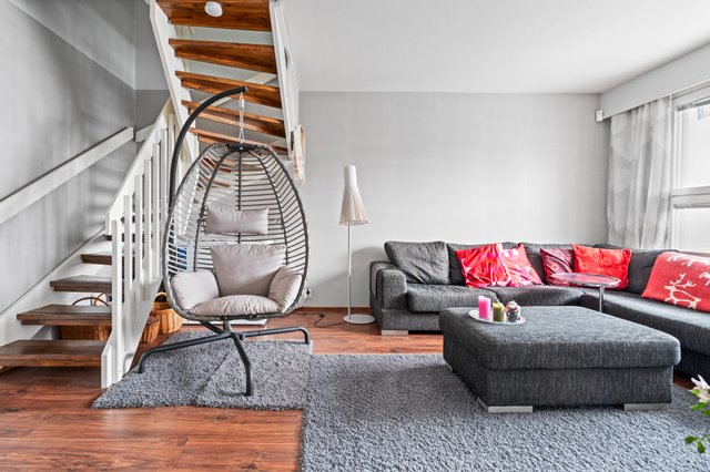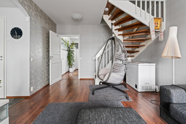 Kaksikerroksinen rivitaloasunto, jossa on kolme makuuhuonetta ja toimiva pohjaratkaisu. Asuntoa on remontoitu vuosien 2007–2013 aikana, ja kokonaisuus on siisti sekä hyvin hoidettu.