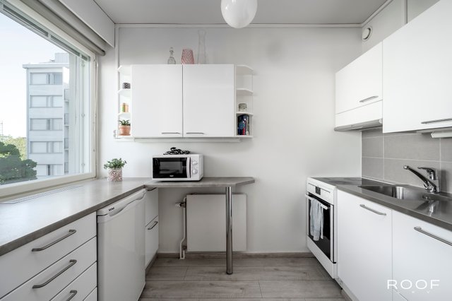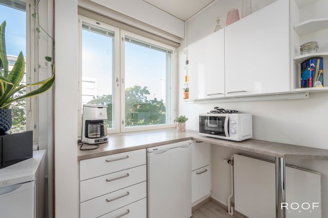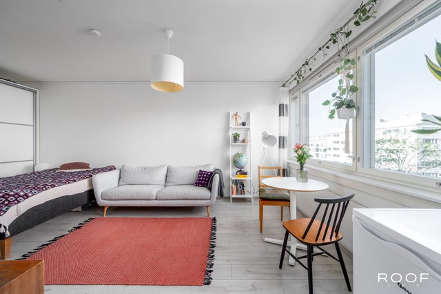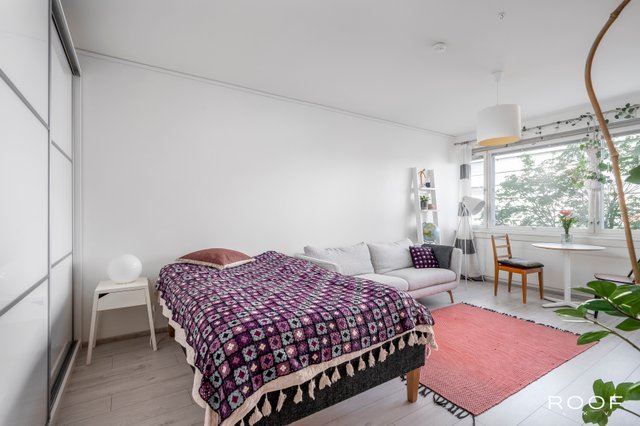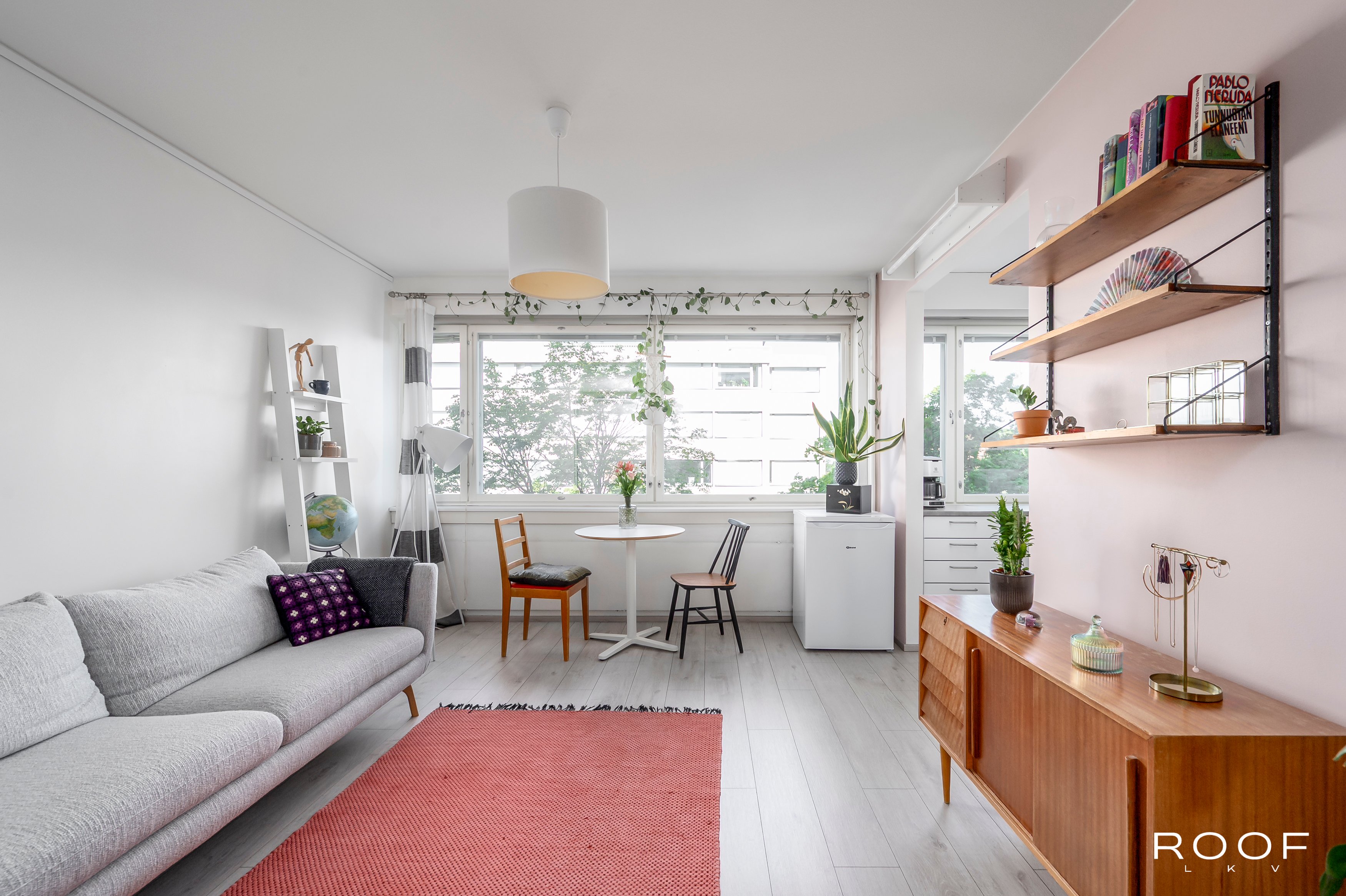 Tämä 31 neliön koti on suunniteltu tilankäytöltään tehokkaaksi, ja sen avara tunnelma tekee asunnosta huomattavasti kokoaan suuremman. Vuonna 2016 uusittu keittiö on moderni ja käytännöllinen, ja sen ratkaisut hyödyntävät jokaisen neliön fiksusti. Linjasaneerauksen yhteydessä vuosina 2012–2013 uudistettu kylpyhuone vastaa nykyajan asumisen tarpeita ja tuo arkeen mukavuutta. Asunnon päähuone on helposti muunneltavissa erilaisiin käyttötarkoituksiin – sinne mahtuvat hyvin sänky, ruokailuryhmä ja oleskelutila. Ikkunoista avautuvat näkymät Linnanmäelle, jotka tuovat arkeen ripauksen iloa ja kaupunkitunnelmaa.