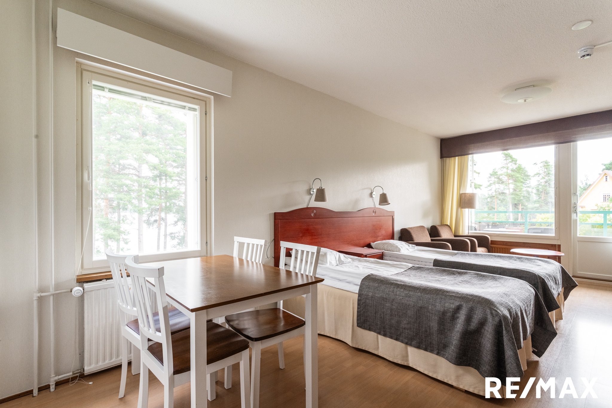 Ikaalisissa, Kylpylän alueella, sijaitsee tämä viehättävä lomahuoneisto, joka tarjoaa upeat näkymät Kyrösjärvelle. Huoneisto on päätyasunto, mikä takaa rauhallisuuden ja yksityisyyden. Tämä 64 neliömetrin kokoinen huoneisto koostuu kahdesta erillisestä asunnosta, joihin molempiin kuuluu oma parveke ja kylpyhuone. Asunto myydään kalustettuna.