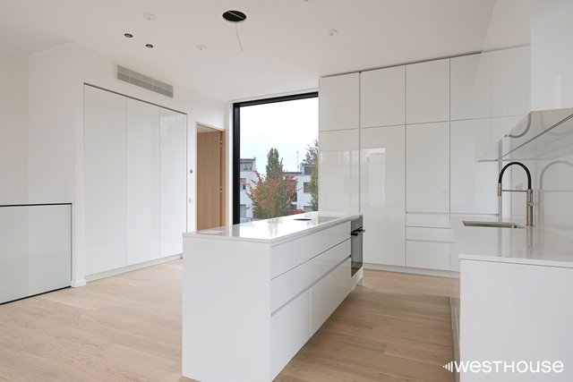 - Keittiö ja säilytyskalusteet ovat huonekalutoimittajan mittatilaustuotteita. Kalusteet varustetaan ovien sulkeutumista hidastavilla mekanismeilla. Keittiössä on seuraavat Mielen kodinkoneet: induktiokeittotaso, kiertoilmauuni, liesituuletin Bora, jääkaappi, pakastin, astianpesukone, mikroaaltouuni. Opdeco mittatilaus ovet kiiltävä valkoinen, kivitasoTechnistone vaalea. Gessin hanat.