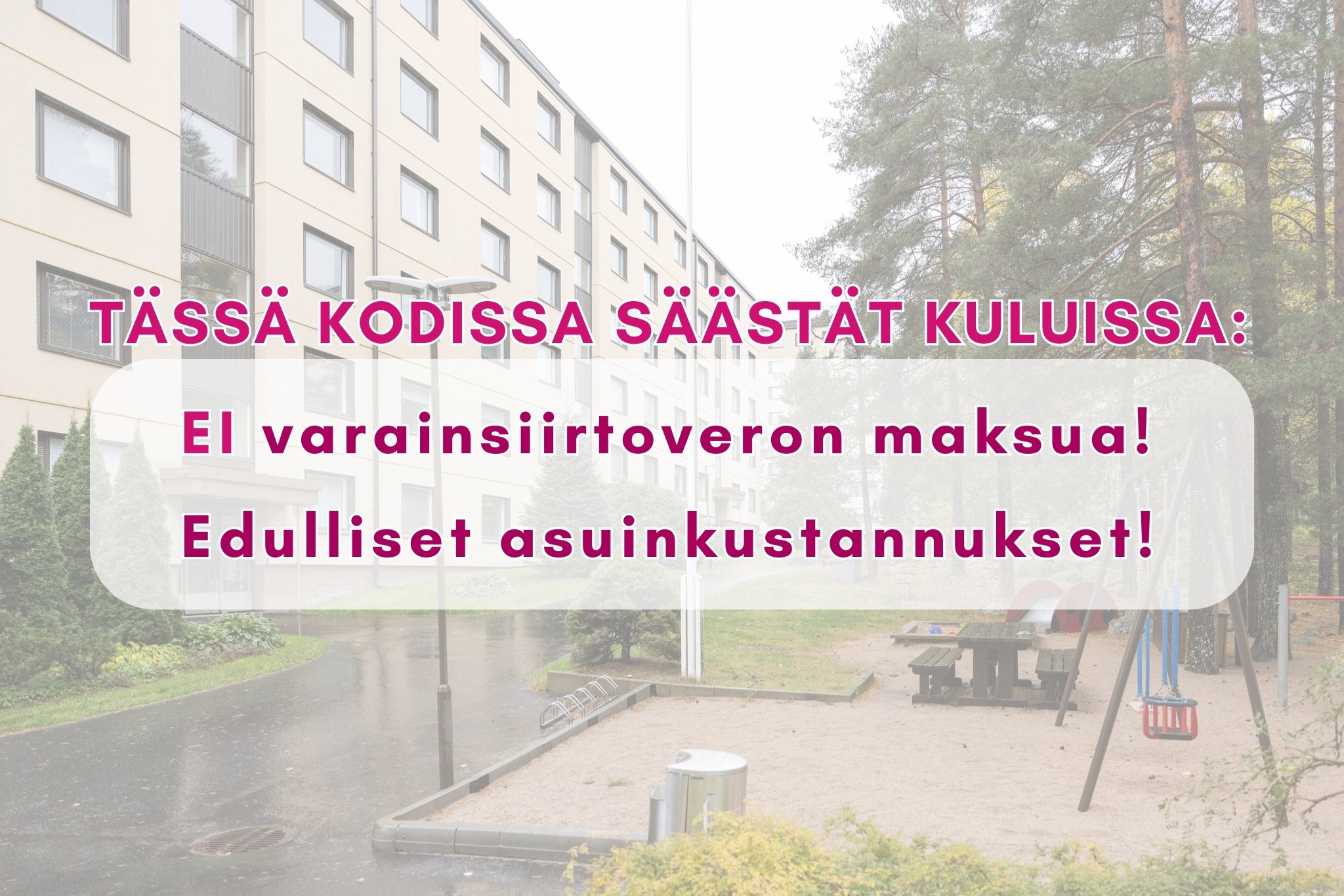 Asunto on taloyhtiön talonmiehen asunto ja se myydään suunnattuna osakeantina jolloin ostajan ei tarvitse maksaa varainsiirtoveroa!