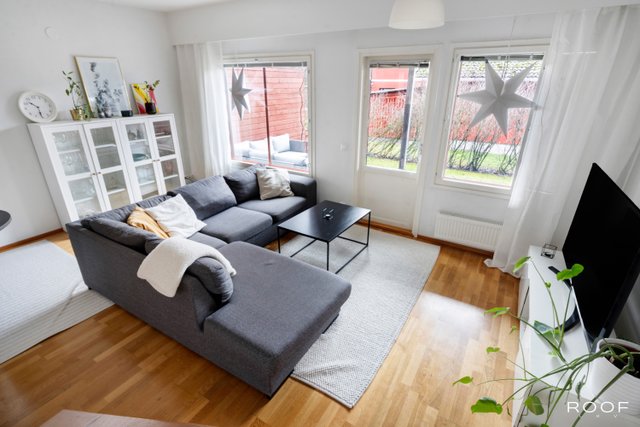 Kodin etelään avautuva piha ja terassi ovat täydellisiä paikkoja nauttia aurinkoisista päivistä. Asunnon sisätiloissa on kaksi makuuhuonetta, tilava olohuone sekä moderni keittiö, jossa on kaikki tarvittavat varusteet. Kylpyhuoneen lattialämmitys ja oma sauna tuovat arkeen ripauksen luksusta. Toinen makuuhuone on helppo jakaa kahdeksi huoneeksi, jos tarvitset yhden makuuhuoneen lisää.