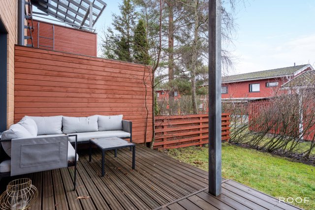 - Terassi ja oma nurmikkopiha, etelän suuntaan.