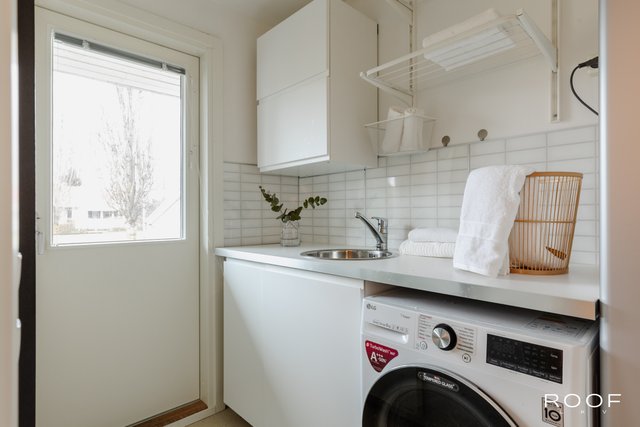 - Pesukoneliitäntä, pöytätaso, ja tila pesutornille