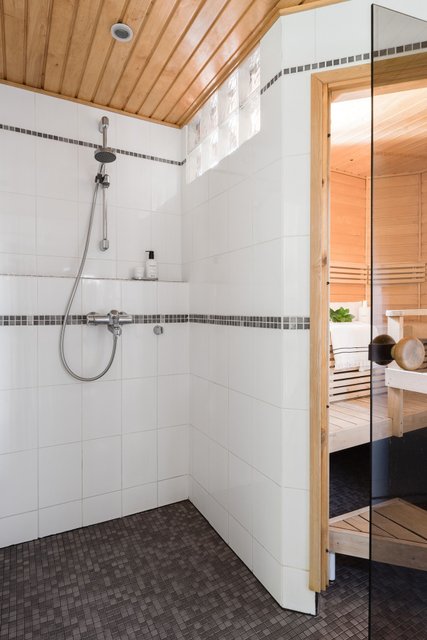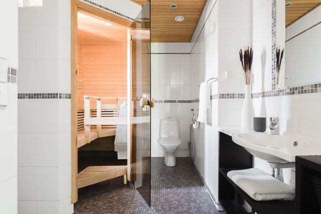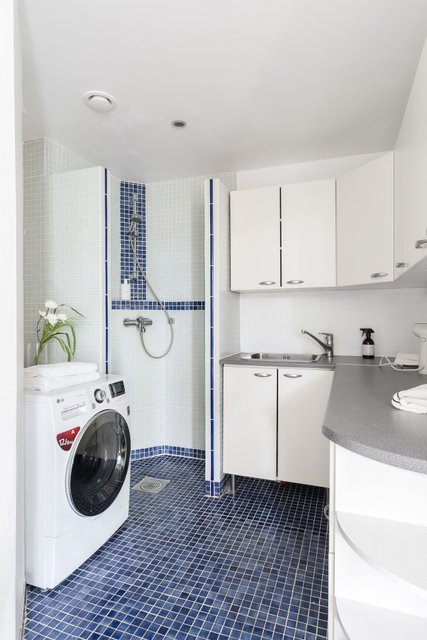 - Varustus: Kaapit, suihku, pesukone, pesuallas.