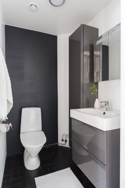 - Suihkussa kaakelia ja kodinhoitotilan kohdalla kalusteväli maalattu