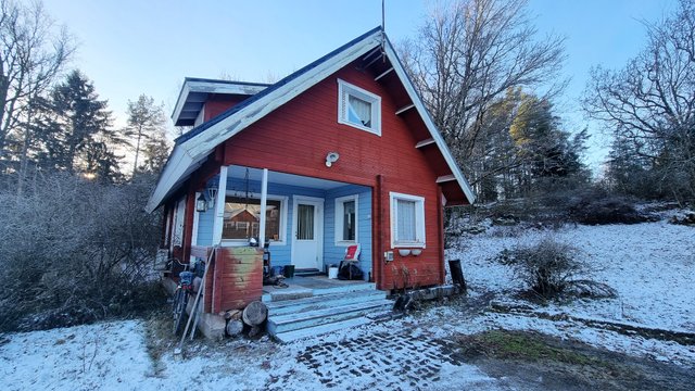 - Hirsirunkoinen, lautaverhoiltu talo, tuulettuva alapohja luonnonkivisokkeli