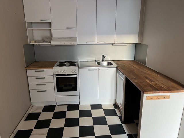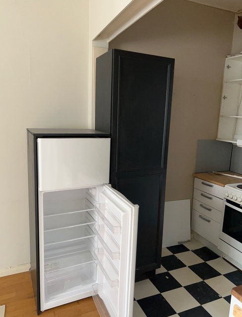 - Jääkaappipakastin, liesi, liesituuletin, ja astianpesukone