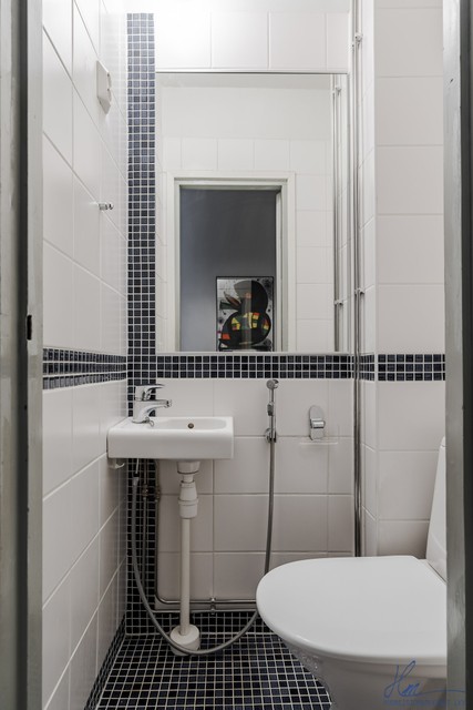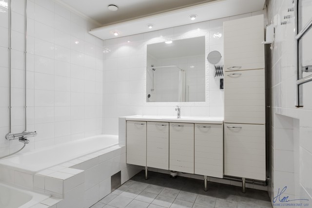 - Kylpyhuone 1990 luvun pintamateriaaleilla. Lattialaatta uusittu putkiremontin yhteydessä v. 2010. Kylpyamme, suihku, peili, kaapisto, rättipatteri. Lattialämmitys.