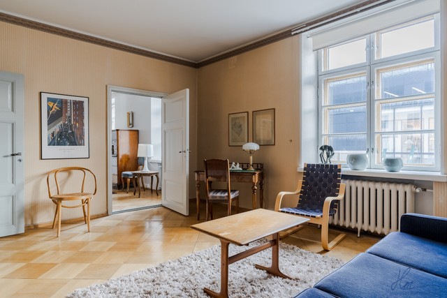 Keskellä kirjahyllyjen kehystämiä huoneita, näet 1920-luvun klassismin piirteitä ja tunnet kulttuurihistoriallisen vaikuttavuuden. Arkkitehti Erik Bryggmanin suunnittelema suojeltu asuintalo Atrium on rakennettu vuonna 1927. Julkisivun koristeellisuus ja porraskäytävien tyylittely johdattelee asukasta kohti kotia.