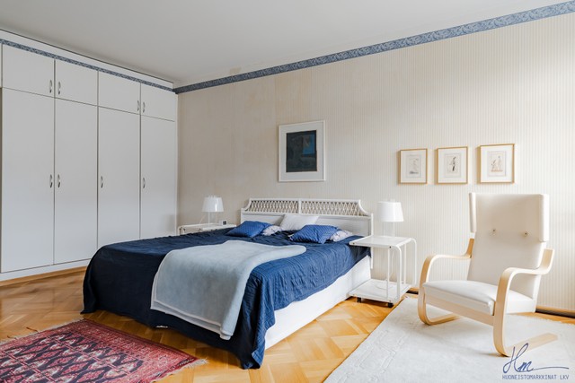 - Huoneistossa nyt kaksi makuuhuonetta. Mahdollisuus jopa neljän makuuhuoneen ratkaisuun. Lattiat parkettia, seinät maalia ja tapettia.
