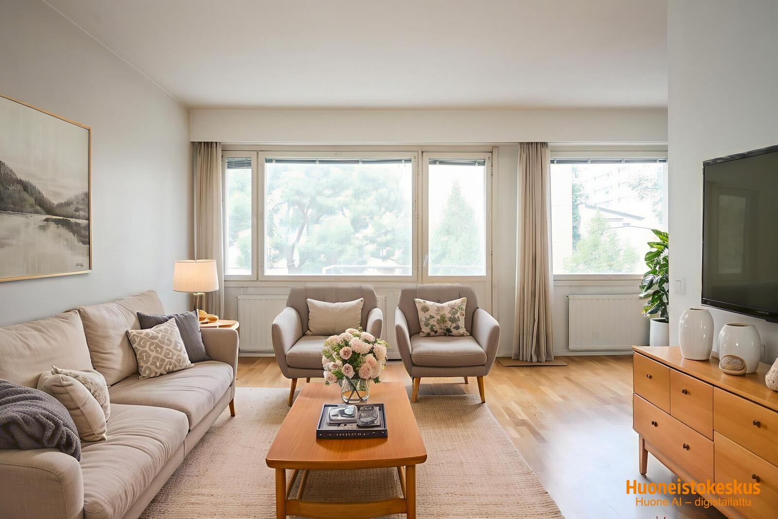 Valoisa kulmahuoneisto, missä olohuone aukeaa avarasti myös keittiön jatkeena olevaan ruokailutilaan. Taloyhtiö on omalla tontilla ja sitä on hoidettu asianmukaisesti. Julkisivun ja parvekkeiden hankesuunnittelu on valmistumassa.
