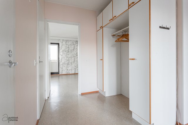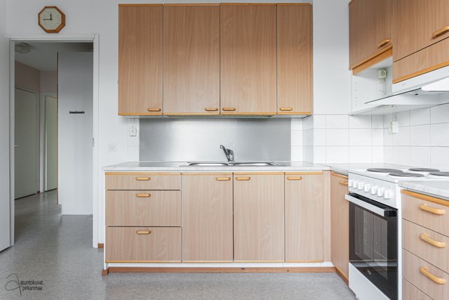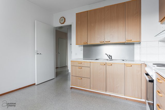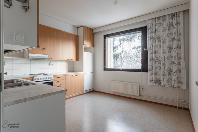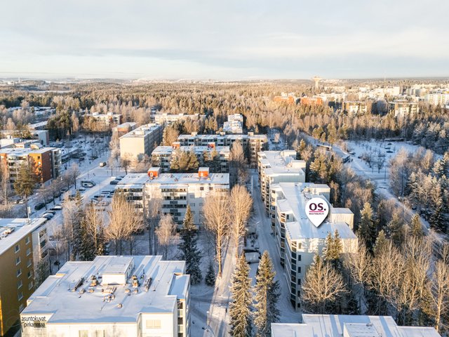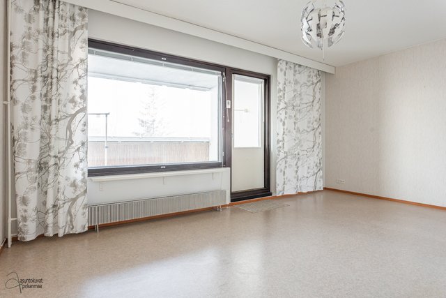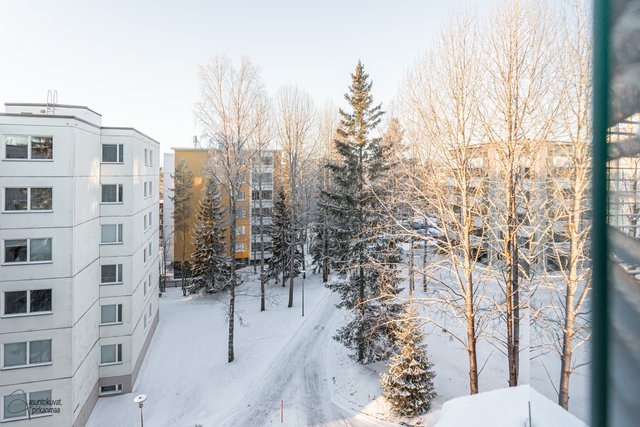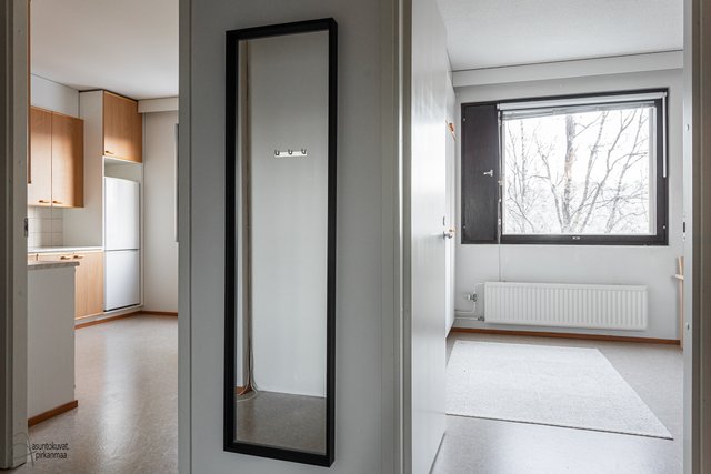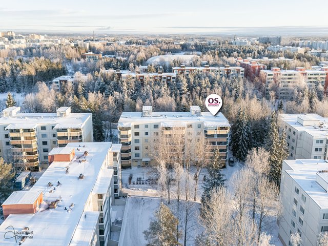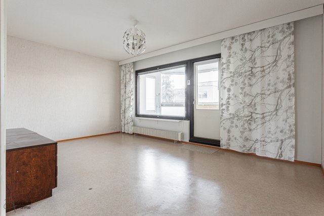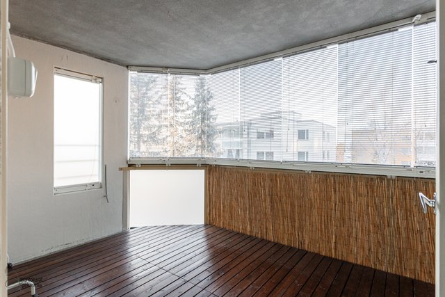 Asunnossa on käytännöllinen pohjaratkaisu: erillinen keittiö, makuuhuone sekä avara olohuone. Asunnon kruunaa erittäin tilava parveke, jota on laajenettu samalla, kun talo on maalattu vuonna 2001. Pesuhuoneeseen mahtuu hyvin pyykinpesukone ja oman saunan löylyistä on mukava nauttia. Erillinen wc on plussaa.