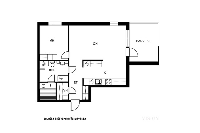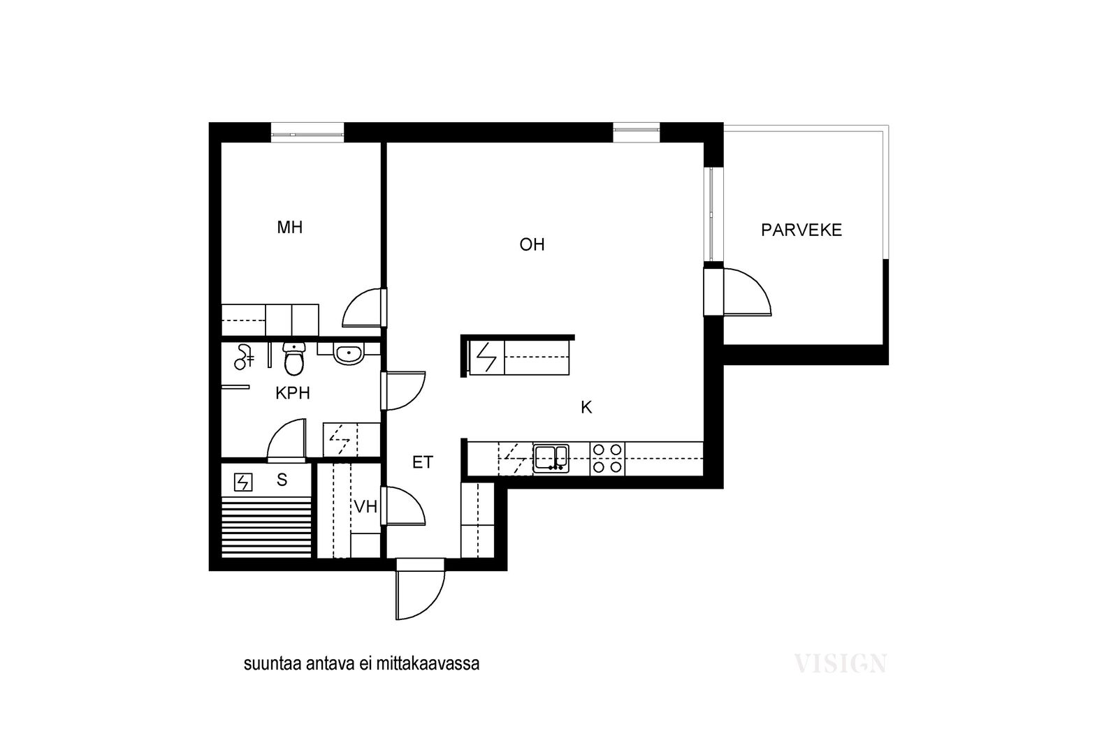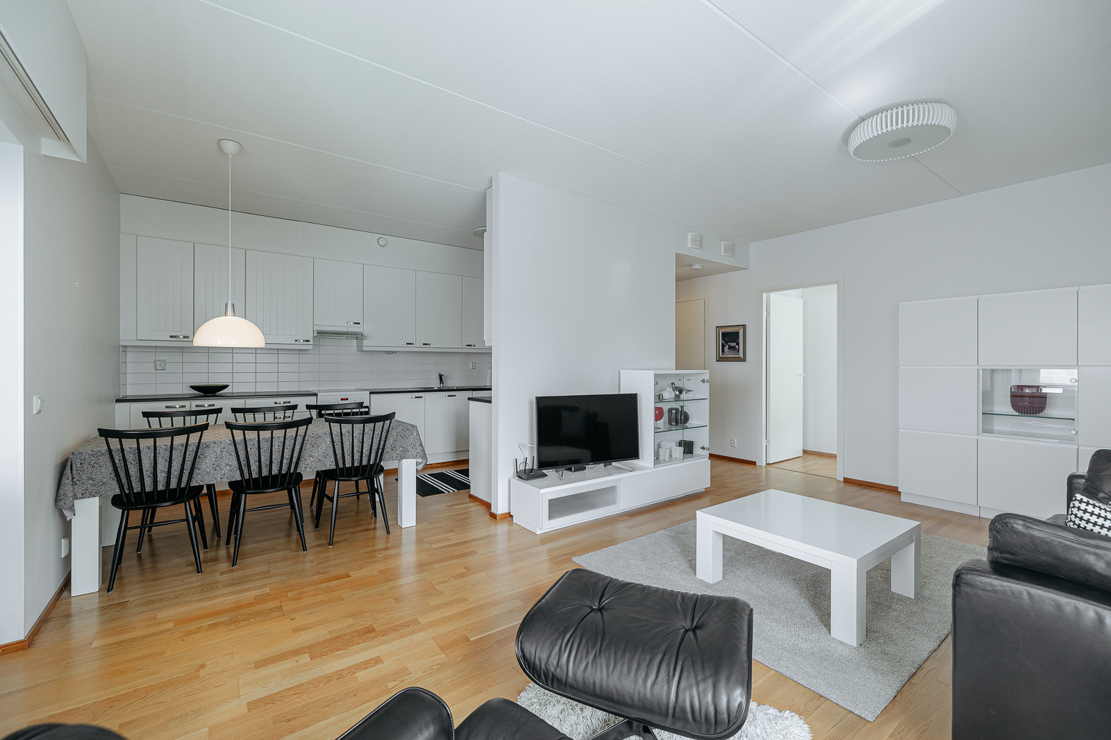 Tämä kolmannen kerroksen saunalla varustettu koti on hoidetussa, siistissä kunnossa. Kaksioksi todella reilu määrä neliöitä, jotka kannattaa tulla kokemaan paikan päälle. Suuri ja valoisa olohuone, josta yhteys runsaalla kaappi- ja laskutilalla varustettuun keittiöön. Olohuoneesta kulku lasitetulle parvekkeelle, joka tuo lähes huoneen verran lisätilaa elämiseen. Pesuhuoneeseen sijoitat vaivatta pyykinpesukoneen. Huoneistokohtaisen irtaimistovaraston lisäksi säilytystilaa tarjoaa eteisen yhteyteen sijoitettu vaatehuone.