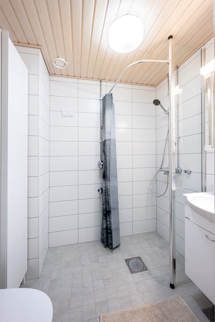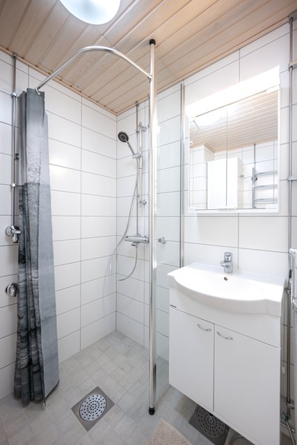 - Putkiremontin yhteydessä uusittu siistikuntoinen kylpyhuone, jossa varusteluna: peilikaappi, käsienpesuallas, suihku, wc-istuin, korkea kaappi Godmorgon-mallisto IKEA, pesukoneliitäntä, sähköinen lattialämmitys.